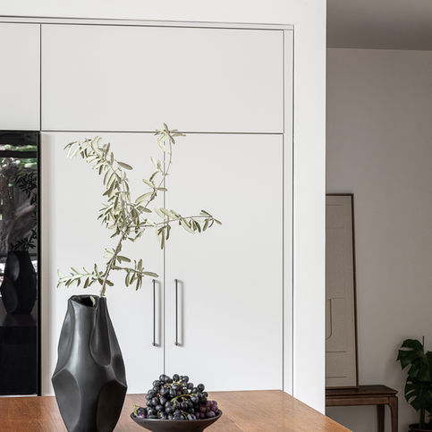 ההתערבות במבנה הייתה חלקית אך מדויקת. בוצעו התאמות חשמל ותכנון תאורה, תכנית העמדה לכל הבית, נגרות אישית מותאמת לצרכים וריהוט.